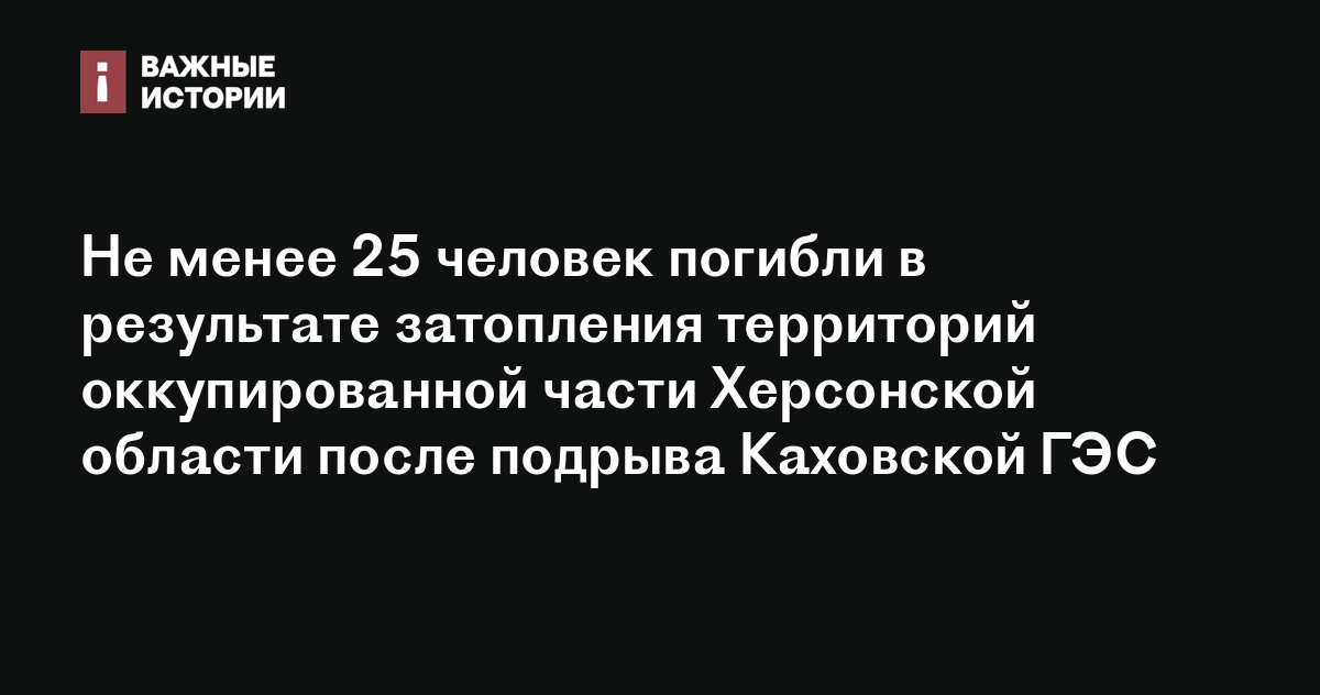 Не менее 25 человек погибли в результате затопления территорий оккупированной части Херсонской области после подрыва Каховской ГЭС