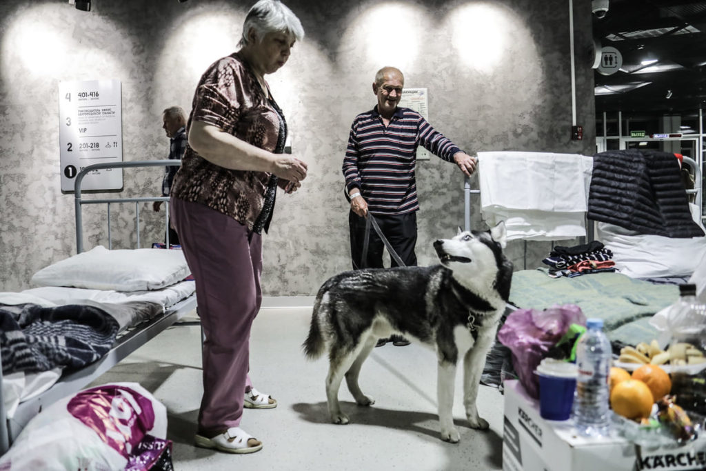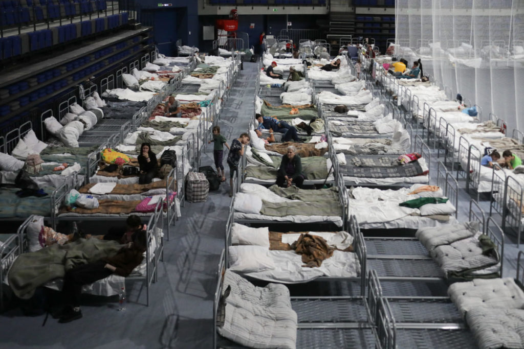 На стадионе «Белгород-Арена» организован пункт временного размещения беженцев. Сотни людей ночуют на койках с животными и детьми. С верхних трибун заполненный стадион напоминает москитную сетку. Иногда вдоль коек проходит врач, меряя давление. Тем, у кого стресс, дают успокоительное, питание тут ежедневно трёхразовое.