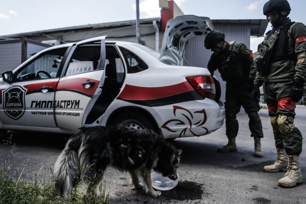 Рейд против мародёров ЧОП «Гиппеаструм» проводит каждый день. Помимо этого, они развозят мирным жителям гуманитарку и помогают с эвакуацией. Оружия им не выдают: у каждого при себе только газовый баллончик и нож. Теробороне оружия тоже не выдают. Короткий курс по тактической медицине проводил военный инструктор. Сегодня знания пригодились: женщина порезалась стеклом, разбитым мародёрами. Пришлось останавливать кровь и везти пострадавшую в больницу. Скорые сюда не ездят — только пожарная машина, бронированная дополнительным листом.