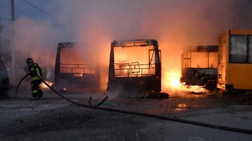 Ликвидация пожара в Херсоне, спровоцированного российским обстрелом