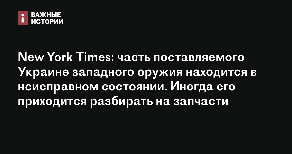 New York Times: часть поставляемого Украине западного оружия находится в неисправном состоянии. Иногда его приходится разбирать на запчасти