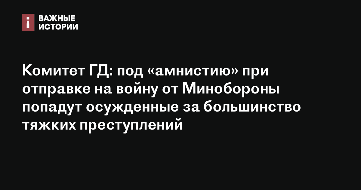 Комитет ГД: под «амнистию» при отправке на войну от Минобороны попадут осужденные за большинство тяжких преступлений