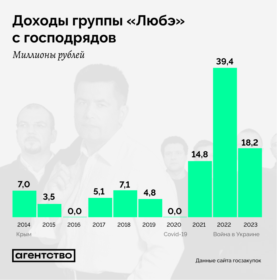 - Всплеск спроса на группу среди госзаказчиков случался и в 2014 году, когда российские власти аннексировали Крым. Тогда за год «Любэ» заработала 7 млн рублей.