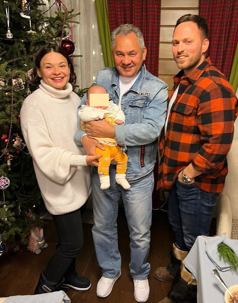Here are the three of them — Stolyarov, Ksenia, and her father Sergey Shoigu (in a denim jacket with Putin Team patch and white trainers). All smiles, celebrating the end of 2021. Ksenia Shoigu shared the picture on her Instagram page before it became private and wrote, “May all our dreams come true!”.