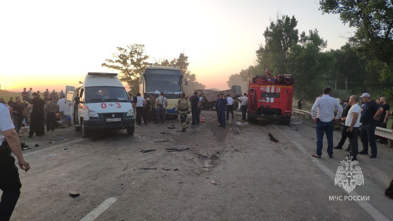 Авария произошла 21 мая примерно в 18:30. Телеграм-канал Baza сообщает, что, предположительно, автомобиль "Тойота Камри" выехал на встречную полосу и врезался в "Камаз", который затем столкнулся с автобусом, выполнявшим рейс Хасавюрт – Москва. После столкновения транспортные средства загорелись.