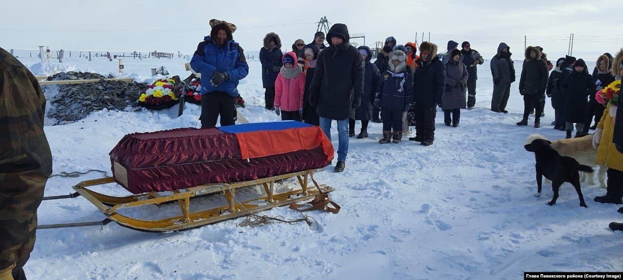 26 апреля в чукотском поселке Янракыннот хоронили 43-летнего Евгения Кеучея – наемника так называемой ЧВК "Вагнер", погибшего под Бахмутом в марте. В небольшом зале местного ДК собрались дальние родственники и односельчане Кеучея. Глава района Евгений Подлесный написал, что у погибшего остались четверо детей. 18-летний сын Александр собирался на похороны, но его не отпустили из детского дома в Магадане, где Саша живет несколько лет.