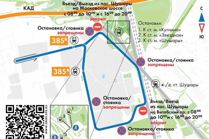 - Добраться до железнодорожной станции «Шушары» можно будет через остановки «Пушкинская ул., д. 10» и «Пушкинская ул., д. 12».