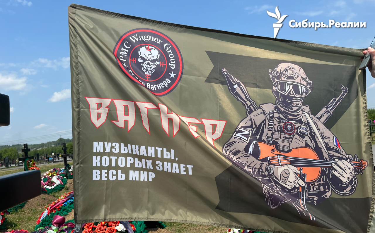Мужчины сфотографировали развевающийся флаг "Вагнер – музыканты, которых знает весь мир" и, не задержавшись ни у одной из могил, уехали.