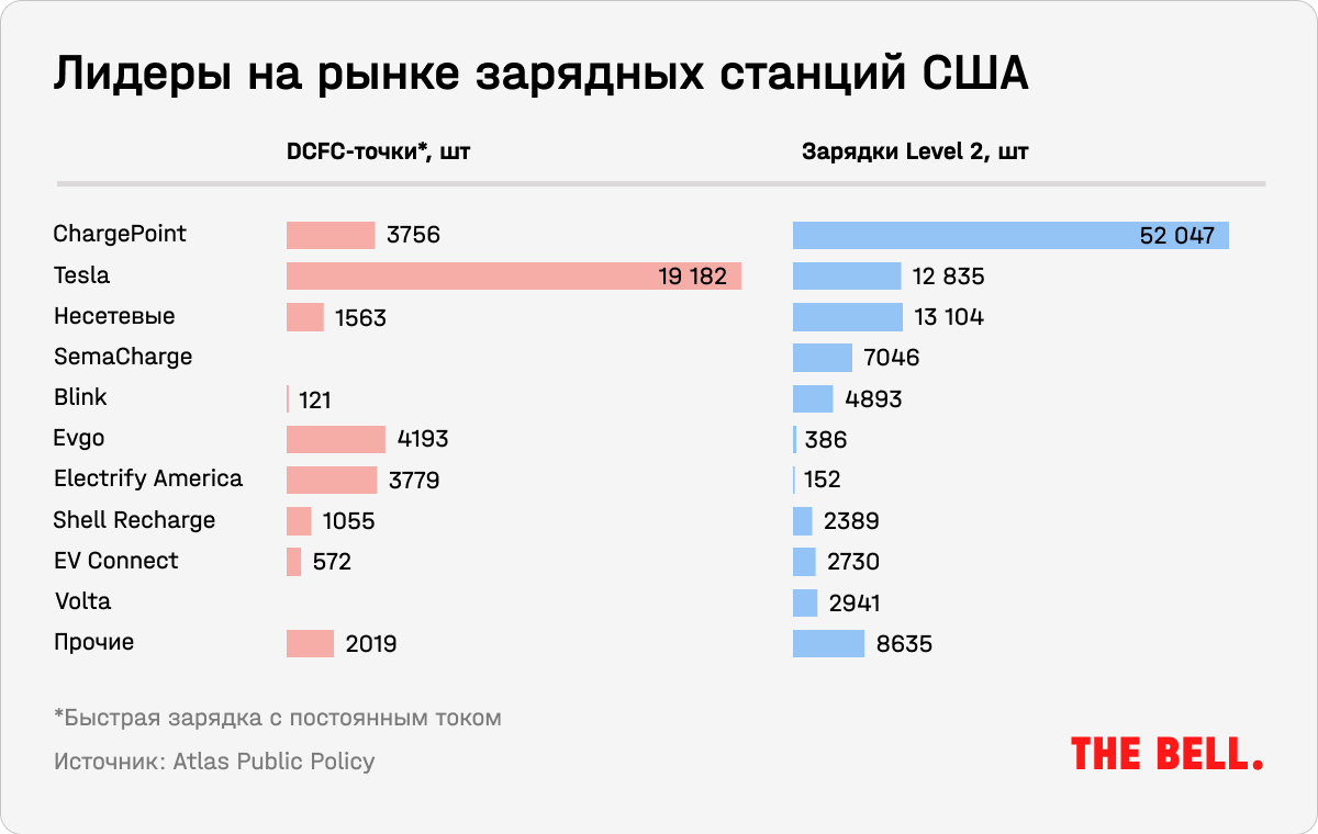 В США насчитывается около 139 тысяч публичных точек зарядки электрокаров. Большую часть «быстрых зарядок» контролирует Tesla. «Если сеть зарядок Tesla будет расти и охватит больше типов автомобилей, в той или иной форме пострадают все [остальные сети зарядок]», — сказал FT основатель консалтинговой компании Atlas Public Policy Ника Нигро. Можно считать, что Tesla уже выиграла битву за стандарт зарядных станций в США, пишет WSJ.