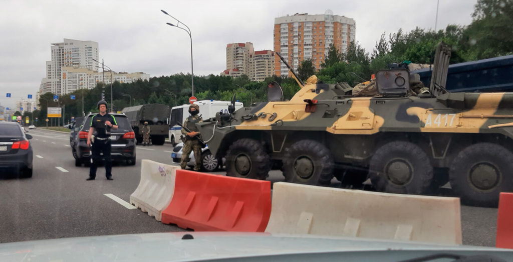 Военные на въезде в Москву.