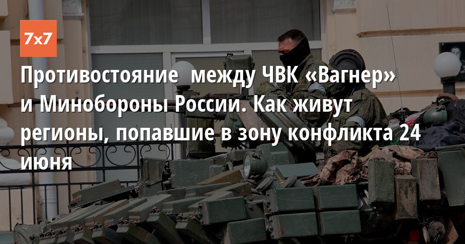 24 июня бойцы ЧВК «Вагнер» вошли в Ростов-на-Дону, Воронеж и Липецкую область. Накануне вечером глава объединения Евгений Пригожин обвинил Минобороны России в спланированной атаке с тыла на его отряды и объявил о «Марше справедливости». Наемники «Вагнера» продвигаются с юга к Москве, чтобы «навести порядок». ФСБ России возбудило в отношении Евгения Пригожина уголовное дело по факту призыва к вооруженному мятежу. В Москве, Московской и Воронежской областях объявлен режим контртеррористической операции. Как конфликт между Минобороны РФ и ЧВК «Вагнер» отражается на регионах - в обзоре «7х7».