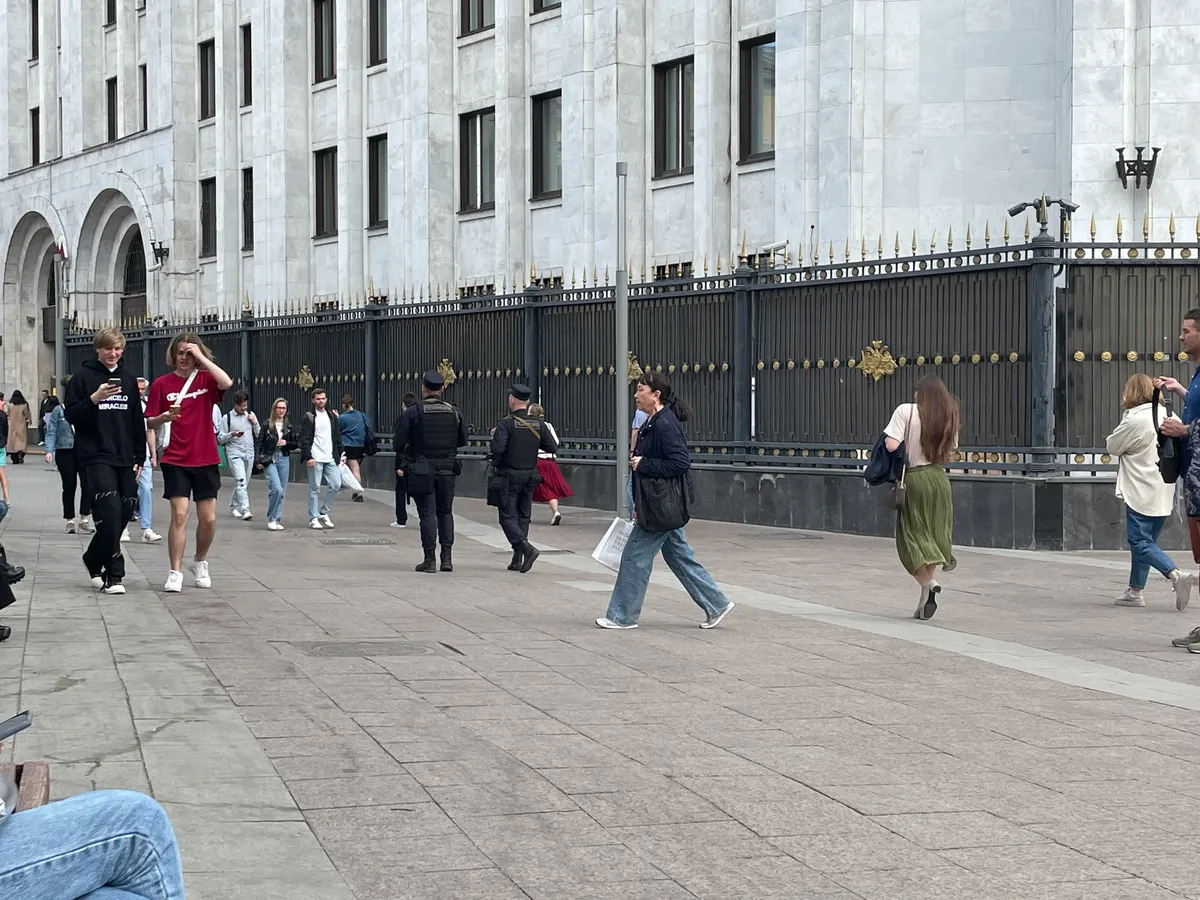 В метро ни на станции «Театральной» в двух шагах от Кремля, ни на «Арбатской», где расположен Генштаб Минобороны России, не было видно ни полиции, ни Росгвардии, ни других представителей силовых структур. Это сильно контрастировало с весной 2022 года, с теми временами, когда шла активная борьба с антивоенными протестами: тогда улицы Москвы и станции метро были переполнены людьми в форме, которые отлавливали прохожих в одежде сине-желтых цветов. Правда, около станции метро «Арбатская», рядом со зданием Министерства обороны, все-таки стоял автозак, и двое полицейских у входа в метрополитен патрулировали улицу. Интернет тут практически не работал.