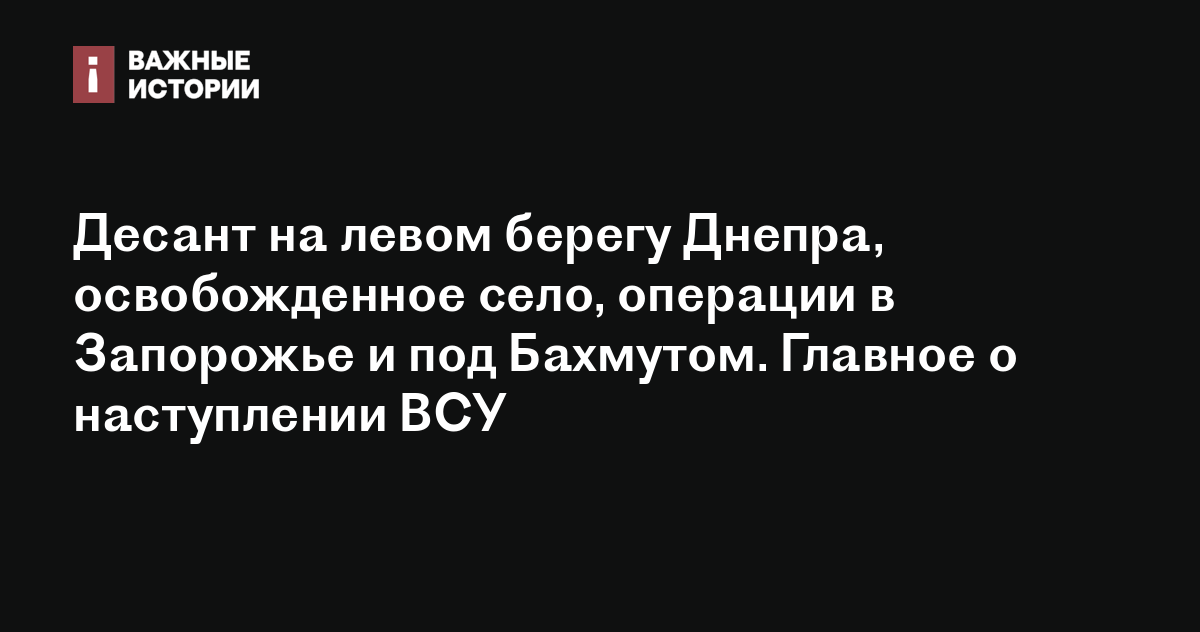 Десант на левом берегу Днепра, освобожденное село, операции в Запорожье и под Бахмутом. Главное о наступлении ВСУ