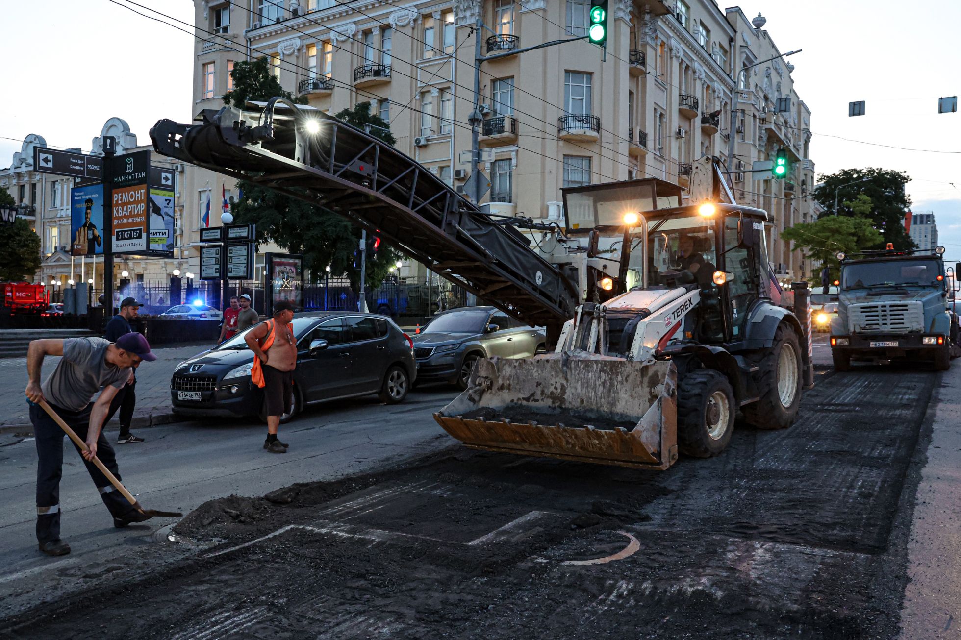 В мэрии Ростова-на-Дону сообщили, что техника вагнеровцев повредила более 10 тысяч квадратных метров дорожного полотна в городе. Власти пообещали отремонтировать их за два дня.