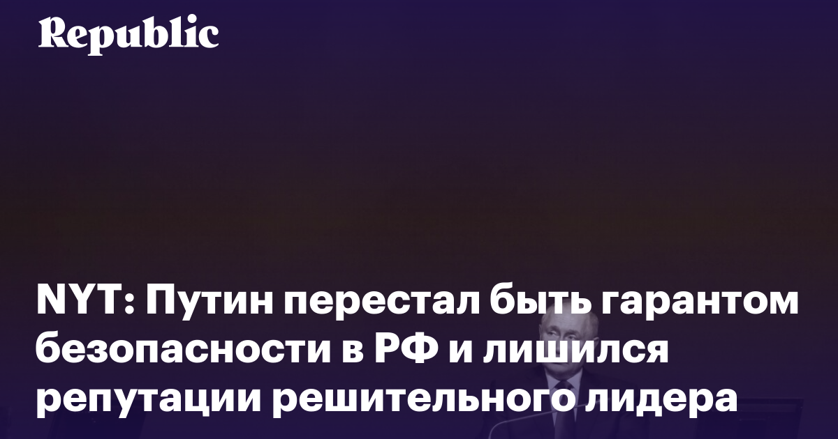 Вооруженный мятеж ЧВК «Вагнер» в России фактически лишил Владимира Путина статуса гаранта безопасности и стабильности в стране, пишет The New York Times. Произошедшее также подорвало его репутацию как решительного лидера, который никогда не терпел предательства, а в данном случае, несмотря на свои обещания наказать мятежников, наоборот, пообещал им свободу — по крайней мере, об этом заявил пресс-секретарь президента РФ Дмитрий Песков.