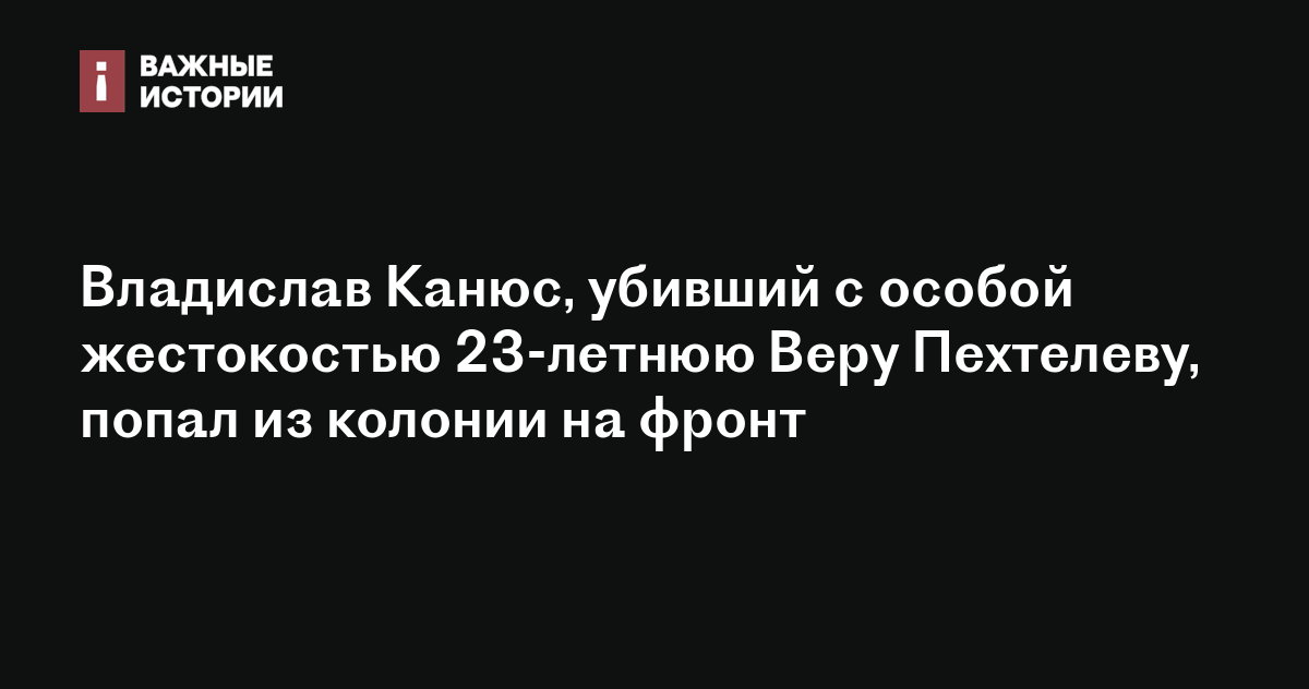 Приговоренный к 17 годам колонии за убийство Веры Пехтелевой в 2020 году Владислав Канюс освобожден из колонии и участвует в боевых действиях в Украине, сообщила правозащитница Алена Попова со ссылкой на родителей погибшей.