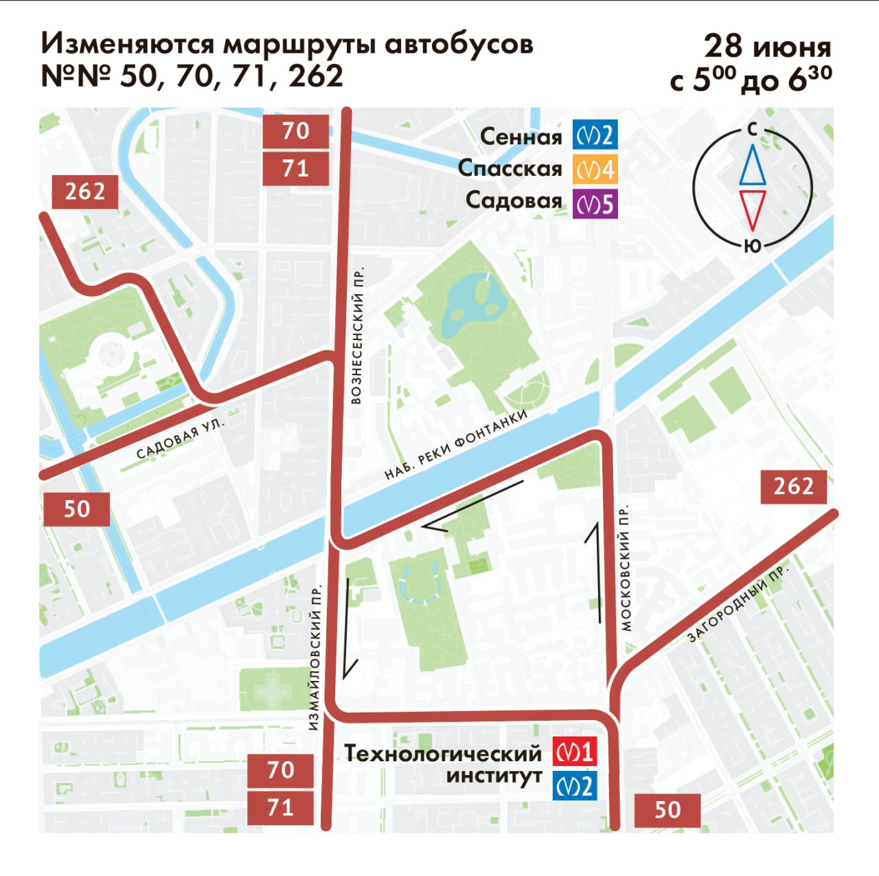 C 5 до 6:30 изменятся маршруты пяти автобусов (№ 28, 50, 70, 71, 262) и двух трамваев (6 и 40).