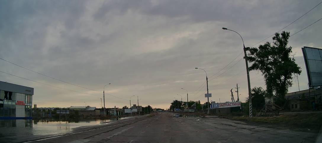 Чудовищное впечатление производят сами Алешки. Блокпосты на подъезде к ним резко заканчиваются, последний – километрах в трех, там развилка на Каховку и на Алешки. На последнем блокпосту ехидно спрашивают: "А не боитесь ли ехать? А то постреливают…" И действительно постреливают – слышны и вылеты, и прилеты. После блокпоста ты брошен на произвол судьбы. Первый мой рейс туда был в сумерках с переменной облачностью. Я попала в эту сумеречную зону с разбомбленной дорогой под не слишком близкие, но все-таки звуки взрывов. Я доезжаю до знаменитых "алешкинских близнецов" – это две идентичные автозаправки по разные стороны дороги, раскуроченные и смытые водой, но, скорее всего, повреждены они были еще до наводнения.