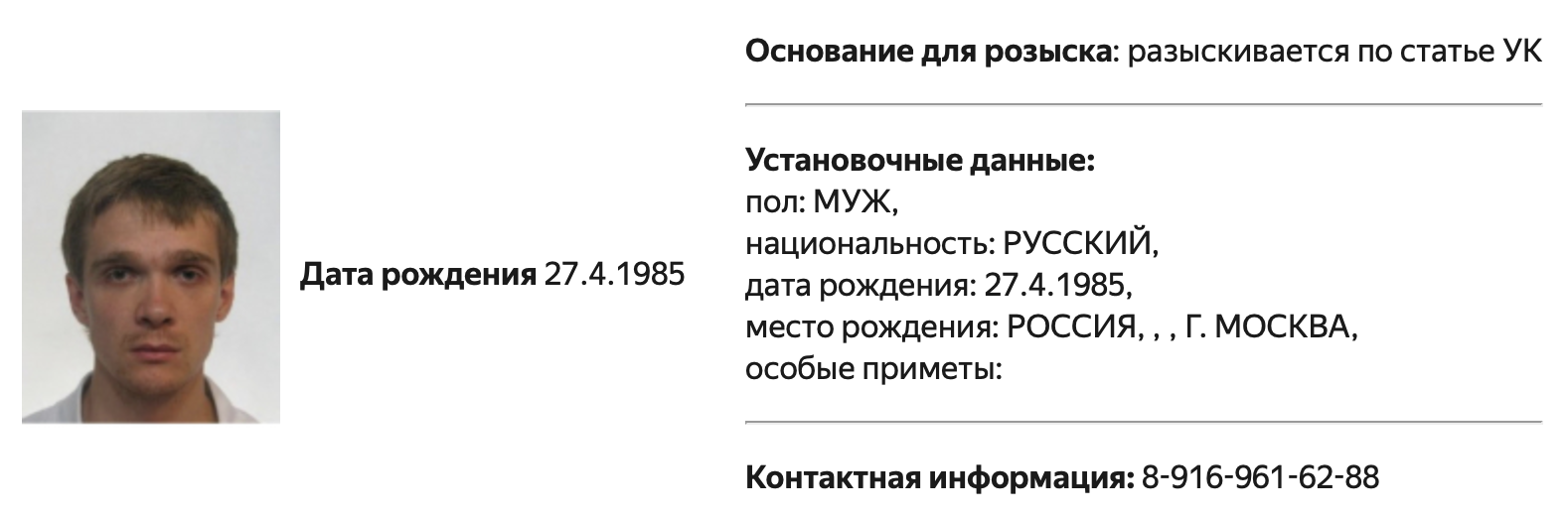 38-летнего Кислицина добавили в базу розыска МВД России, а Тверской районный суд Москвы сегодня удовлетворил ходатайство следователя о его заочном аресте.