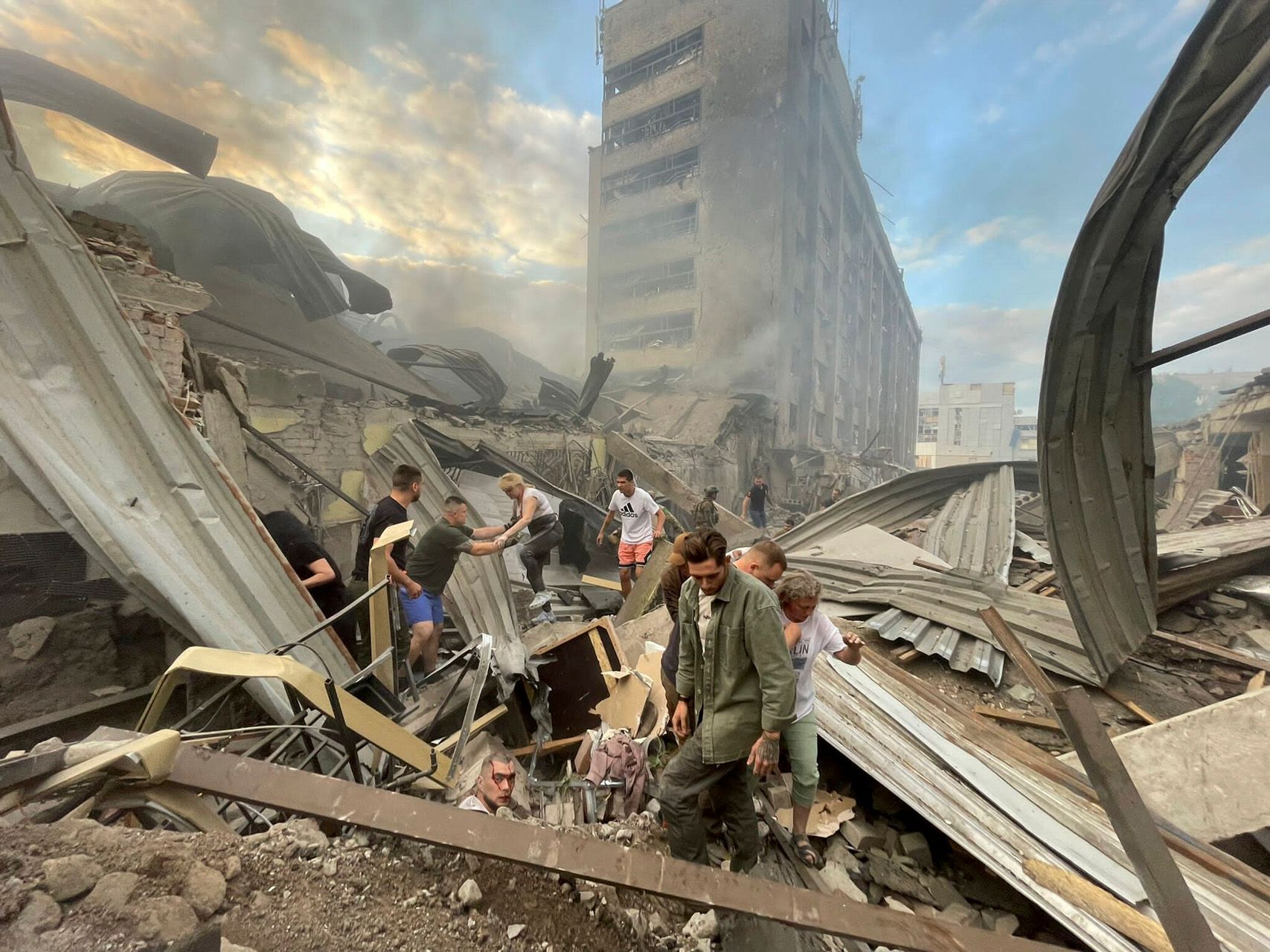 Как выглядят последствия удара по Краматорску. Погибли десять человек, спасатели и жители города ищут выживших среди завалов