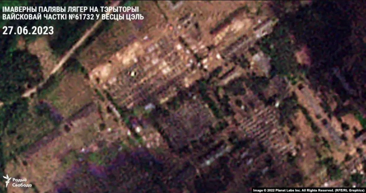 «Радио Свобода Беларусь» сравнила снимки от 17 и 27 июня. При этом украинский военный эксперт Олег Жданов в разговоре с журналистами заявил, что говорить о подготовке лагеря для наемников пока рано.