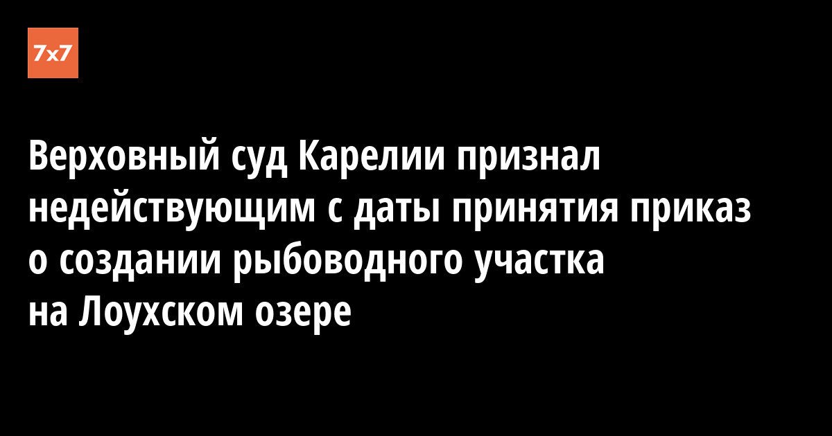 Верховный суд Карелии признал недействующим с даты принятия приказ о создании рыбоводного участка на Лоухском озере