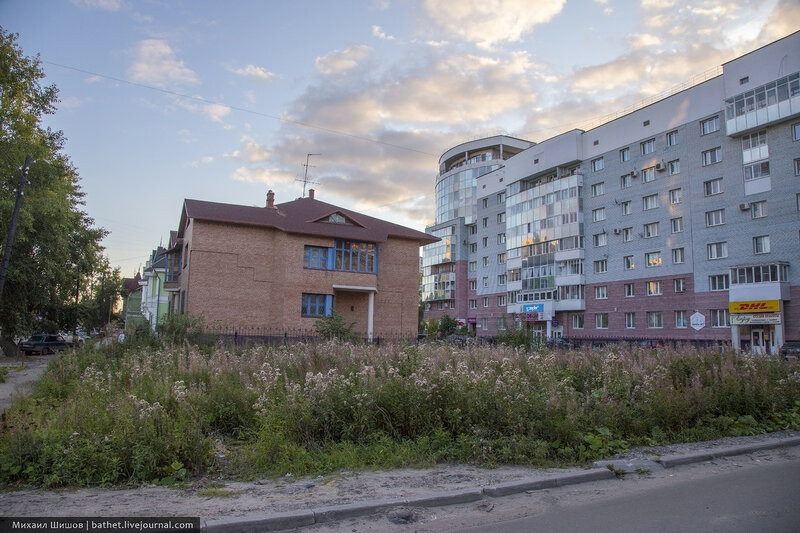 В 2012 сгорел дом по адресу Поморская, 43, его как-то быстро разобрали, но с тех времён ничего не делали, стоял пустырь. Долгое время на это месте росла трава, но уже в 2015 из высоких кустов начали выглядывать молодые деревья.