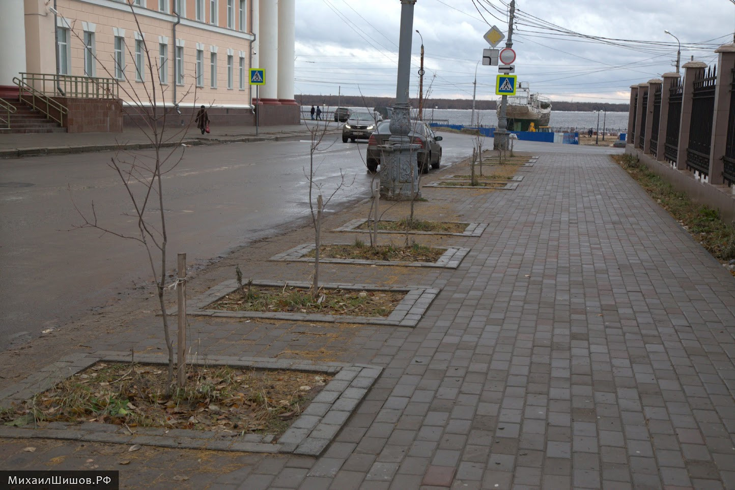 Посадили эти клёны в далёком 2013 году ещё при замене плитки, так как тополя с удивительным Архангельским кронированием — не выжили. Количество их я помню — было 11 штук, да и сами можете посчитать, количество клумб, пройдя по тротуару.