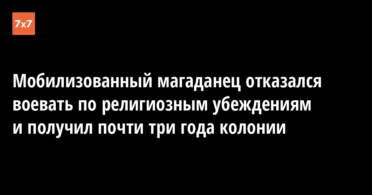 Суд признал 28-летнего мужчину виновным в неисполнении приказа во время мобилизации (часть 2.1 статьи 332 УК РФ) и приговорил к двум годам и десяти месяцам колонии. Поводом стали отказы отправляться на войну в Украину. В суде магаданец заявил, что религиозные убеждения не позволяют ему брать в руки оружие и использовать его против других людей. Мужчина просил заменить ему службу по мобилизации на альтернативную гражданскую.