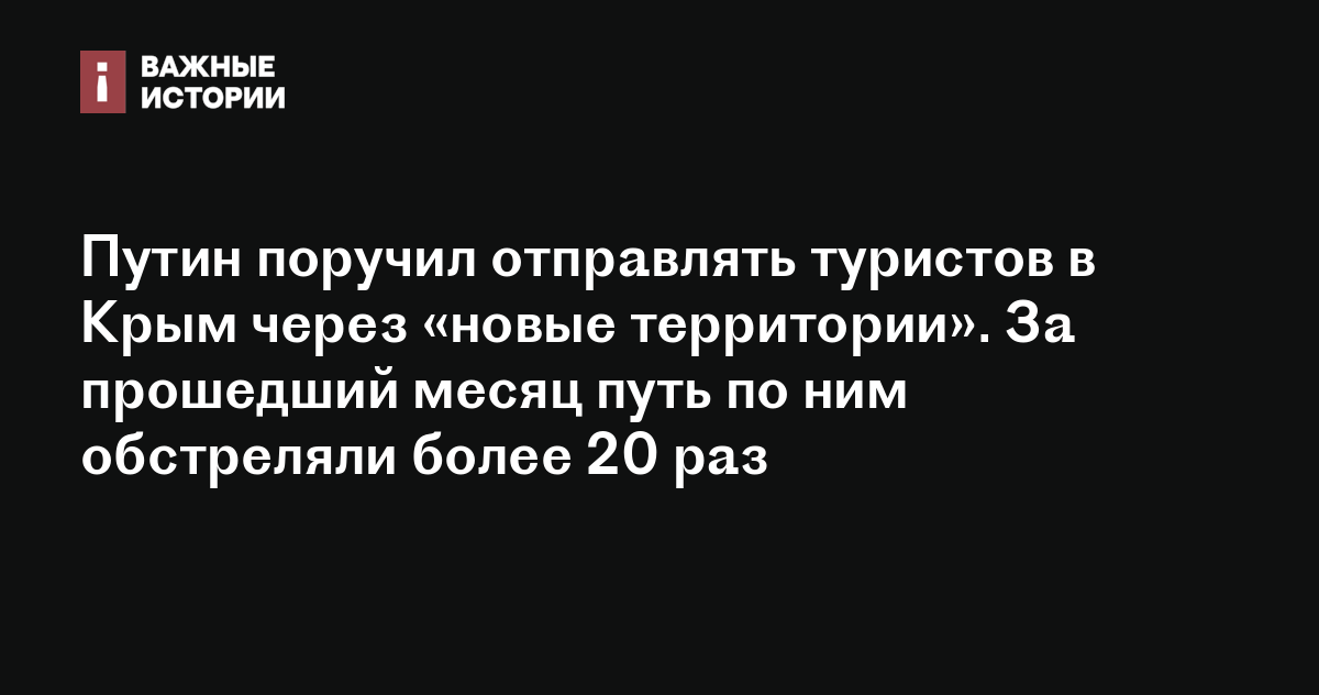 Путин поручил отправлять туристов в Крым через «новые территории». За прошедший месяц путь по ним обстреляли более 20 раз