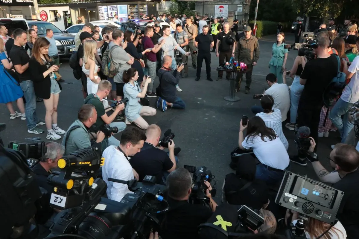 В радиусе километра от здания суда улицы перекрыли силами полиции и Национальной гвардии. До десятка машин «Скорой» рассредоточились в непосредственной близости от места чрезвычайного происшествия. Невзирая на предупреждения об опасности, за лентой, ограждающей подступы к суду, собралось, кроме журналистов, много зрителей — жильцов соседних домов: после ракетных атак киевляне стали на редкость закаленными.