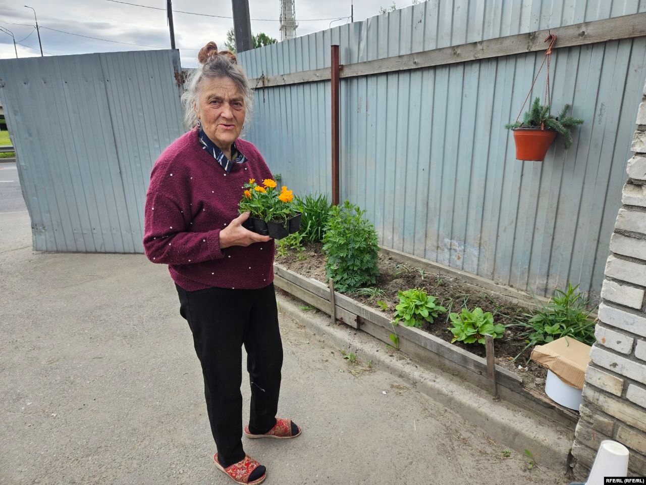 Валентина не просит помощи, сама высаживает растения вдоль забора и в старых покрышках, бережно их поливает. Только вот с рассадой сложновато – купил бы кто и подарил.