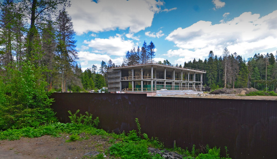 Тем временем в Комарове продолжают ставить новострои на месте старых дач. Напротив ансамбля писательских домиков развернулась масштабная стройка.