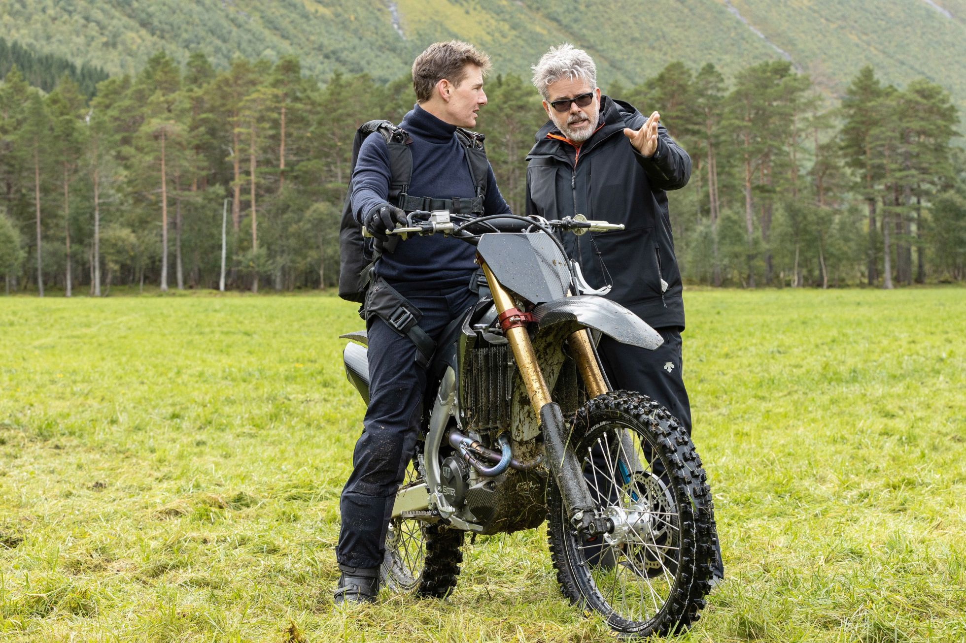 После шести недель подготовки команду инженеров и все оборудование по воздуху доставили на Хельсеткопен. Рядом с обрывом специалисты собрали гигантский трамплин, по которому в фильме едет герой Круза. В день съемок актер несколько раз прыгнул с парашютом в пропасть из вертолета. А затем обладатель трех «Золотых глобусов» шесть раз прыгнул на мотоцикле с горы без страховки. После всего этого режиссер фильма Кристофер Маккуорри признался: