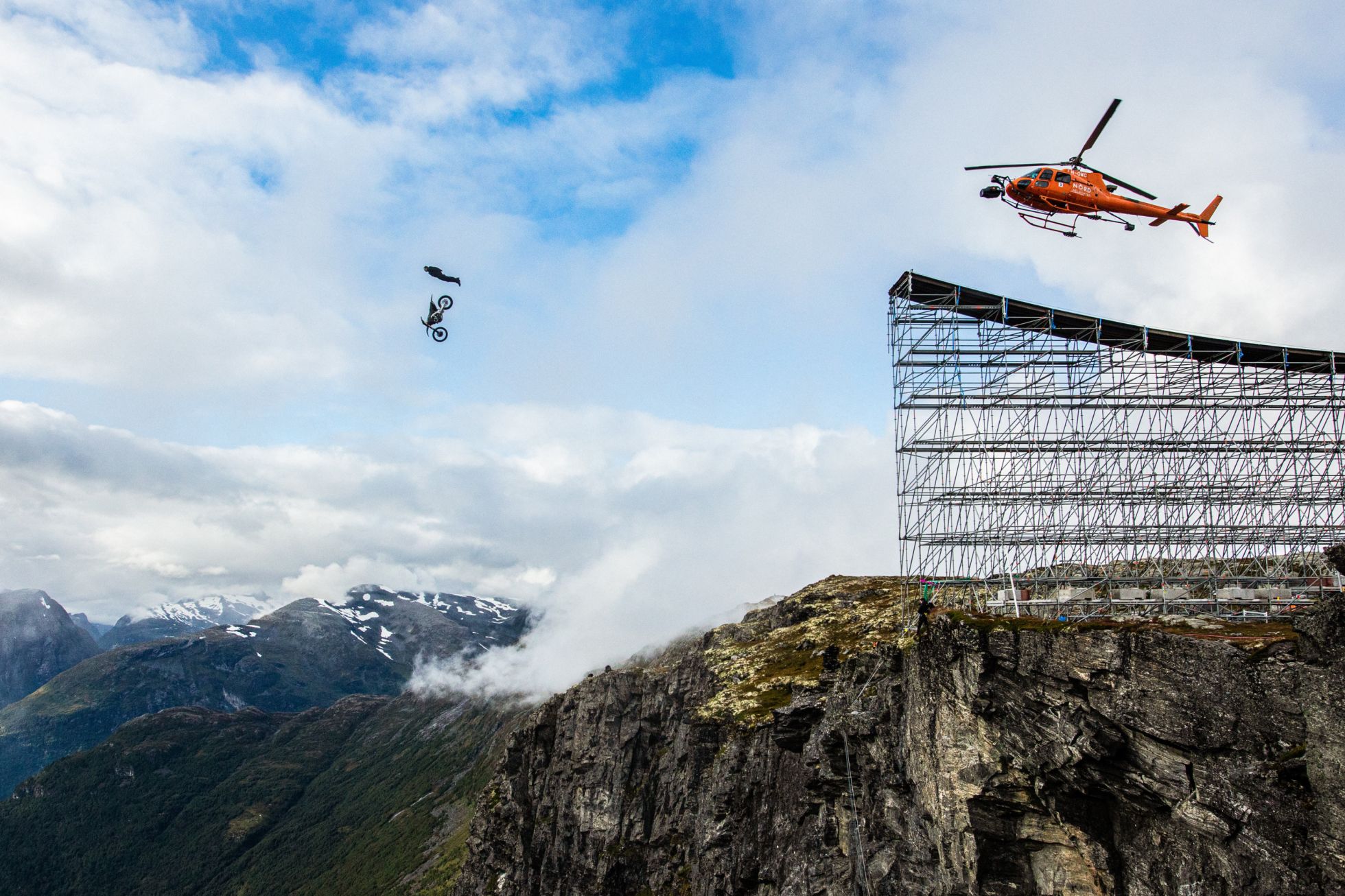 Съемки новой «Миссии» начались с самого опасного трюка картины. В нем актер разгоняется на мотоцикле по огромному трамплину, чтобы затем вместе с байком прыгнуть с обрыва норвежской горы Хельсеткопен высотой 1246 метров над уровнем моря. По словам Круза, он планировал этот трюк несколько лет: