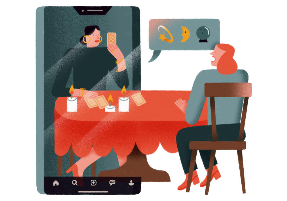 «Я видела эфиры на несколько миллионов человек, в которых таролог говорил: “Вам выпала эта карта, у вас будут такие-то отношения с этим человеком” — и миллион человек отписывались в комментариях: “Вау, это все про нас”, — вспоминает Лиана. — Мне казалось, что у многих из них не было ни одного сомнения. Они слепо верили в эти массовые расклады и отправляли “молящиеся” эмоджи со словами благодарности».