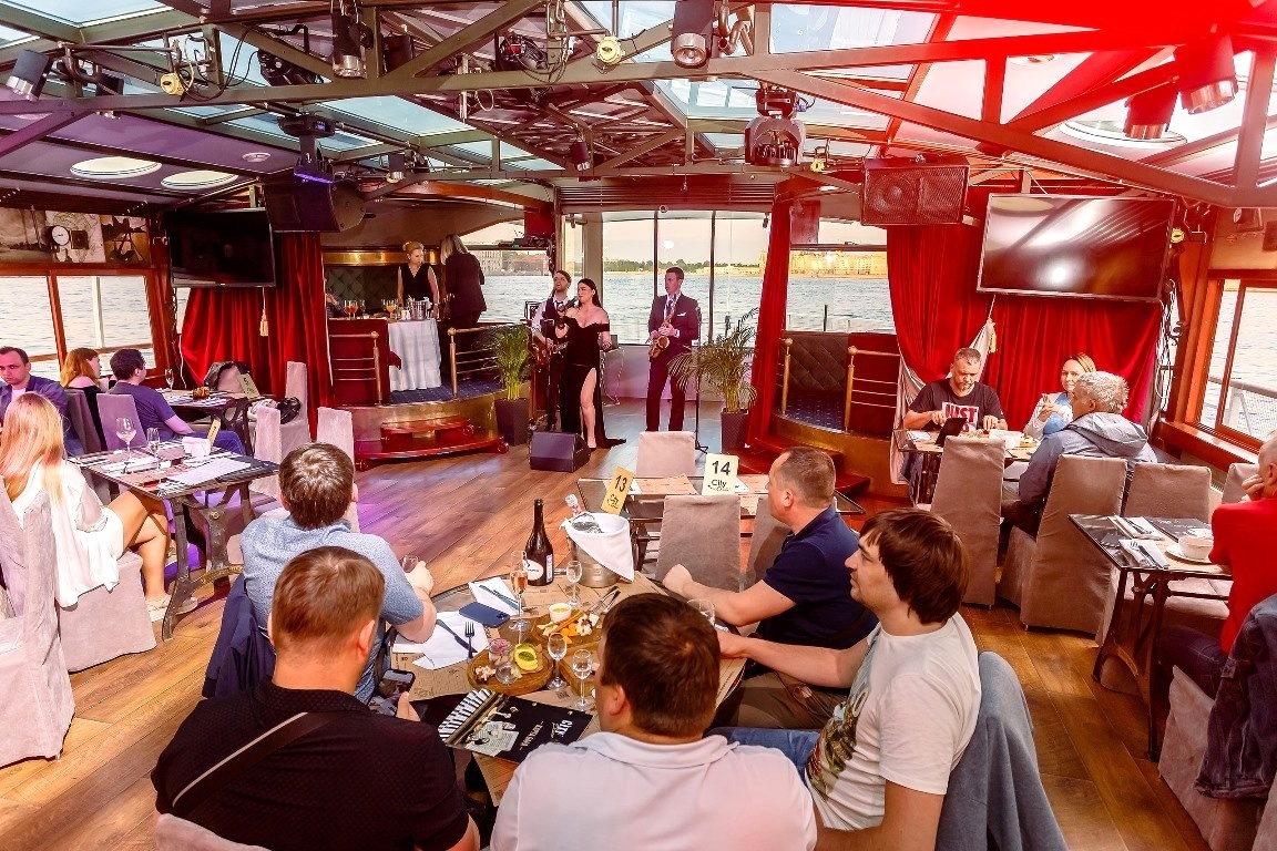 Еще один вариант совместить водную прогулку с живой музыкой — вечерний маршрут «Джаз под разводными мостами» на теплоходах-ресторанах «Астра» и «Москва». Суда проходят под Благовещенским, Дворцовым, Троицким и другими петербургскими мостами, а на борту гостям предлагают живую джазовую музыку, приветственный бокал игристого и рестораны с обслуживанием по меню.