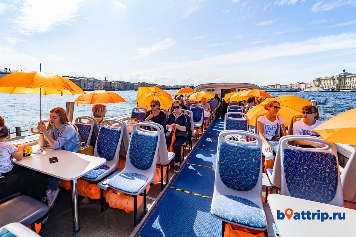 Теплоходы компании «Смольнинское пароходство» отправляются от причала «Медный всадник» в 1:00 — за один час прогулки суда совершают круг, проходя Дворцовый, Троицкий и Литейный мосты. В зависимости от погодных условий маршрут может быть изменен.