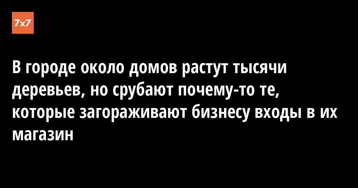 В городе около домов растут тысячи деревьев, но срубают почему-то те, которые загораживают бизнесу входы в их магазин
