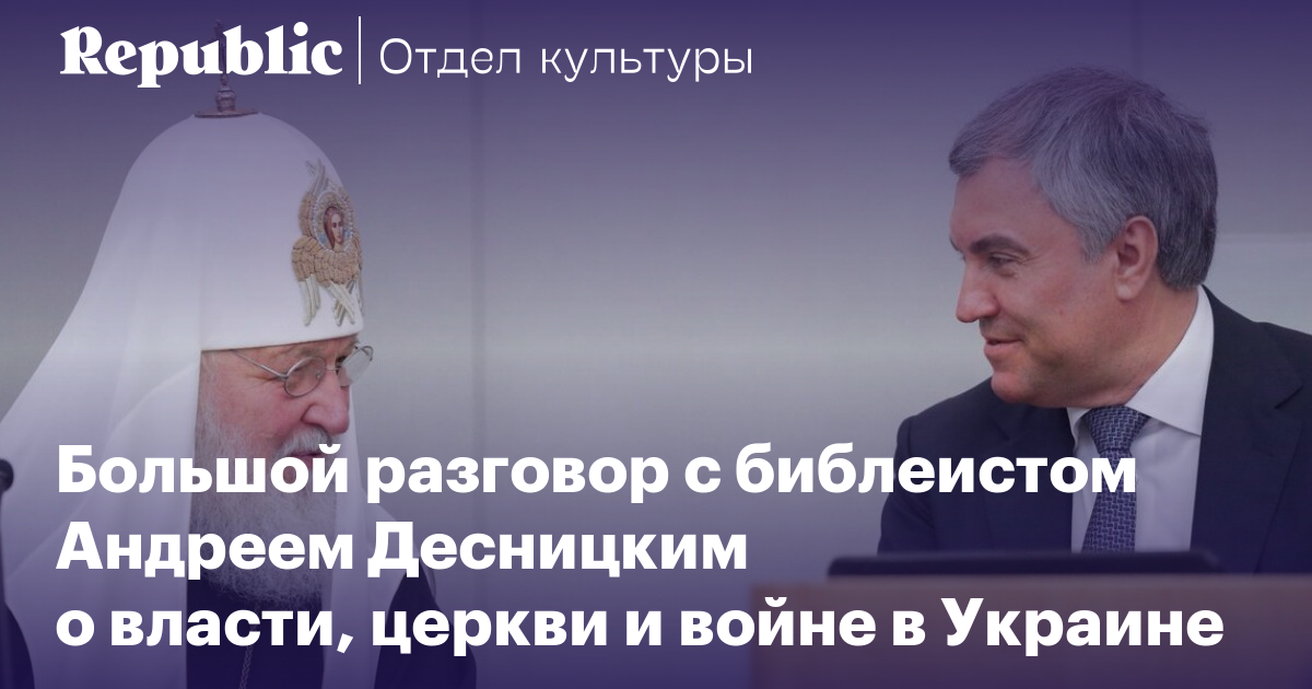 У христианства в принципе трудная судьба, — всякая власть старалась найти в нем оправдание собственным действиям, но в России судьба христиан еще горше: то их запрещали, то им внушали, что всякая власть угодна Богу. Сейчас, во время войны, российские православные, да и не только они, и даже не только верующие, оказались перед трудным выбором. Как относиться к тому, что церковные верхи оправдывают действия властей цитатами из Библии? Что говорит христианство о коллективной ответственности? Где выход для воцерковленного человека, если он против войны, а батюшка в церкви предлагает помолиться за победу российского оружия? На эти непростые вопросы мы попросили ответить известного библеиста, филолога из Вильнюсского университета Андрея Десницкого.