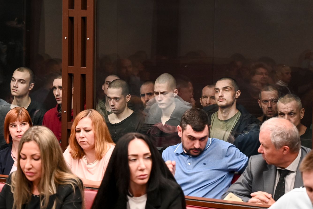 After the siege of Mariupol by Russian forces in the spring of 2022, the Russian authorities took prisoner thousands of people who had been involved in the defense of the city’s Azovstal factory or associated with the Azov Brigade, a part of Ukraine’s Armed Forces. Now, 24 of those people have been transferred from the Russian-occupied Donetsk to Rostov-on-Don, in Russia proper, where they’re standing trial on charges of “forcibly seizing power” and “participating in a terrorist organization.” Photos from the court proceedings show the defendants looking emaciated and pale. The multiple Ukrainian and Western human rights organizations that have condemned the trial say Russia is violating — not for the first time — the Geneva Conventions on the Treatment of Prisoners of War.