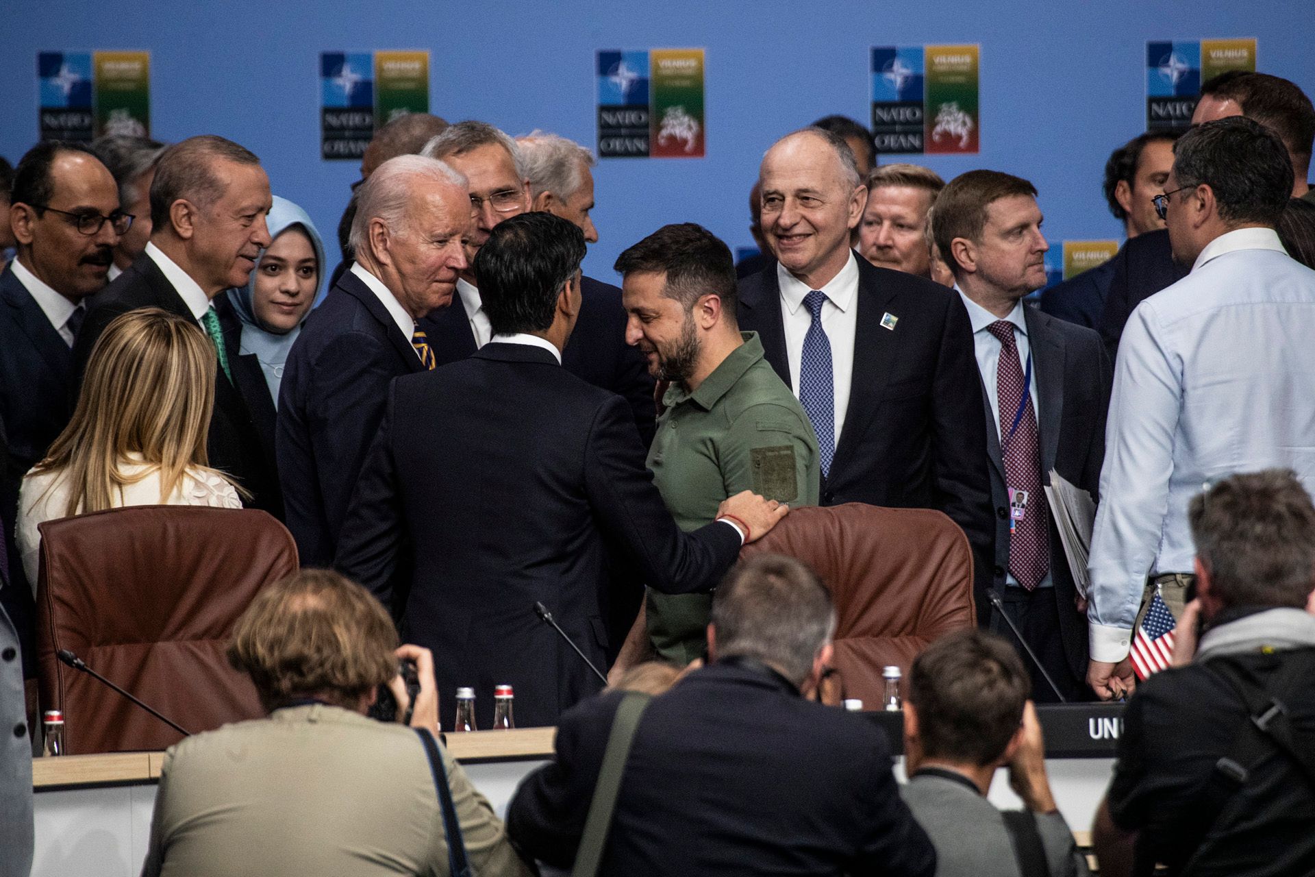В Вильнюсе 11–12 июля прошел саммит НАТО. Одной из его главных тем стала поддержка Украины. В первый день саммита страны НАТО согласились упростить процесс вступления Украины в альянс, но отметили, что Украину пригласят в блок, когда «согласятся все союзники и будут выполнены условия» (какие условия, неясно). Президент Украины Владимир Зеленский прибыл в Вильнюс 11 июля, но на саммите НАТО появился на следующий день. 12 июля прошло первое заседание Совета Украина — НАТО, созданного на основе комиссии Украина — НАТО, существовавшей с 1997 года. Зеленский заявил, что создание совета «дает нам чувство, что мы будем в составе альянса». Страны G7 в то же время приняли заявление о гарантиях безопасности для Украины, в котором пообещали военную и финансовую поддержку.