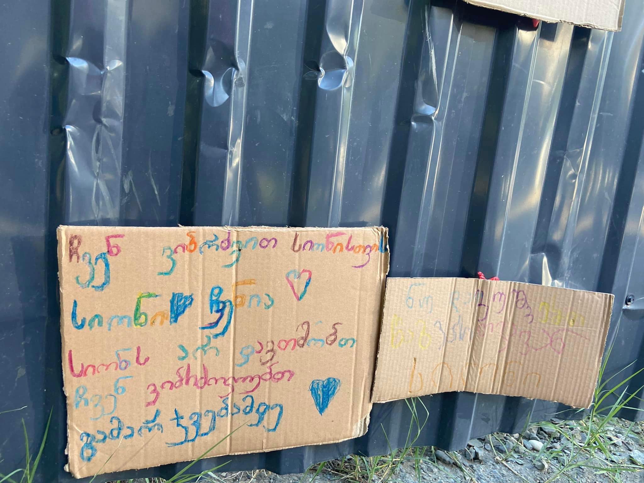 Строительный забор жители обклеили самодельными плакатами. На них говорится: «Нам нужен воздух, нам не нужны жилые корпуса», «Мухиани заслуживает парк», «В Мухиани не осталось места. Оставьте нам Сиони», «Сиони у нас не отнять!», «Выходите! Сиони в опасности», We love you Sioni, «Мы боремся за Сиони. Сиони наш. Мы не уступим Сиони. Будем биться до победы».