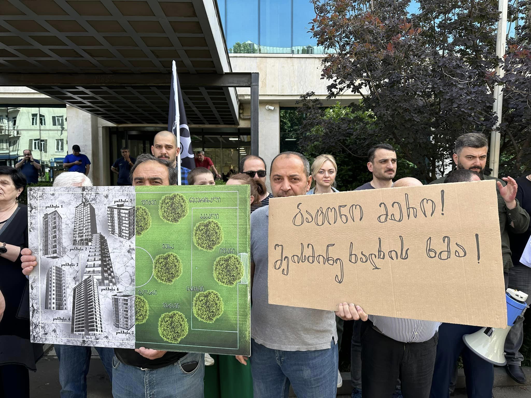 «На футбольных стадионах не должны строиться корпуса, — заявил на одной из акций Гиорги Джапараидзе, основатель движения «Мой город меня убивает», которое поддерживает протестующих в Мухиани. — Благодаря усилиям каждого из нас на этой территории будет озеленение, поскольку Мухиани, как любому другому району, нужен центральный парк».