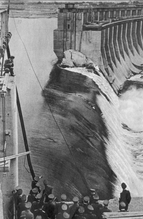 Но обо всём по порядку. Воздвигнутая в годы Голодомора электростанция – самая мощная во всей Евразии – восхвалялась советской прессой как технологический шедевр, но на немецкого инженера Рудольфа Волтерса она произвела иное впечатление: "Весь комплекс, плотина и электростанция, был запроектирован немцами, оборудован частично американцами и построен при их консультациях и русском руководстве. В деталях работа скверная. Железобетон уже внешне производит плохое впечатление: арматура местами свисает из бетона, на необработанной поверхности которого тут и там уже 10 лет держатся куски деревянной опалубки. Пульты управления и прочие электрические устройства таковы, что в Германии их оценили бы как самую плохую ученическую работу". Да и строили объект с обильным использованием ручного труда – например, кадры кинохроники запечатлели рабочих (вчерашних крестьян), которые ногами месили бетон.