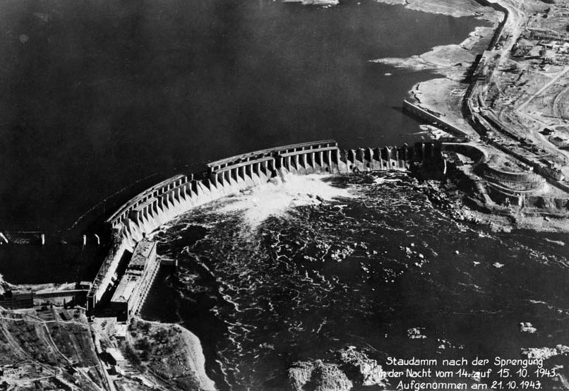 Что же касается уничтожения плотины Днепрогэса сапёрами вермахта, то ситуация 1941 года повторилась в 1943 году в зеркальном отражении – германское командование также хотело задержать советское наступление. Немецкие подрывы были меньше по совокупной мощности, зато точнее, что объясняется тем, что у германских сапёров на минирование был не день, как у Эпова, а полгода, к тому же учитывался опыт разрушений Красной армии 1941-го и восстановительных работ 1942 года. Точно так же, как и советские инженеры, немцы ввиду прихода противника провели сброс излишков воды из водохранилища.
