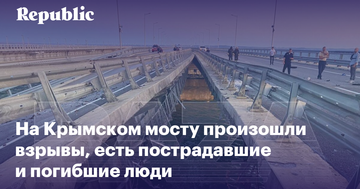 На Крымском (Керченском) мосту сегодня ночью произошли взрывы, о чем сообщили российские и украинские телеграм-каналы и СМИ. Движение по путепроводу остановили, на подъездах к нему образовались многокилометровые пробки. Паромная переправа в Крым сейчас также не работает. В результате ЧП есть погибшие и пострадавшие. Что стало причиной ЧП пока не уточняется. Озвучено несколько предварительных версий случившегося — ракетная атака или атака морскими беспилотниками по мосту со стороны ВСУ.