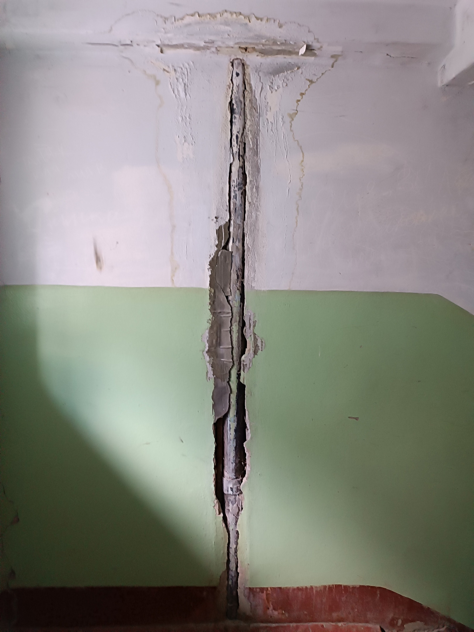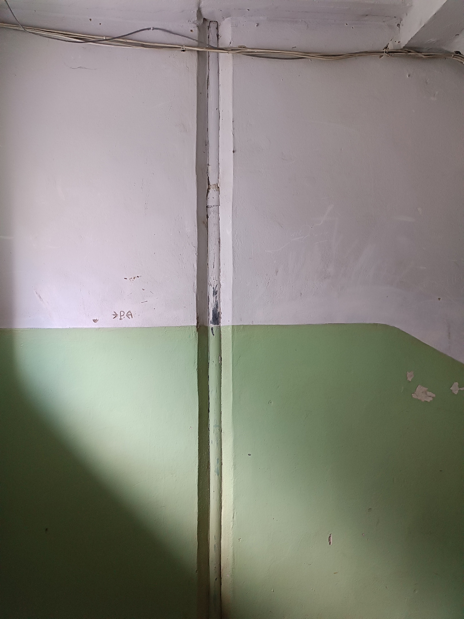 Очень характерно для этой УК ситуация в одном подъезде. В стене через этажи проходит труба — заглублена, но полностью не зашита для возможности ремонта, интересное техническое решение. Края канала к трубе сведены штукатуркой под 45 градусов — в получившемся заглублении труба чуть-чуть видна, выглядит симпатично. Но на одном этаже видны следы ремонта трубы и последующая замазка в стиле «не выкидывать же штукатурку». Как оказалось, в этом доме находятся сотрудники УК ...