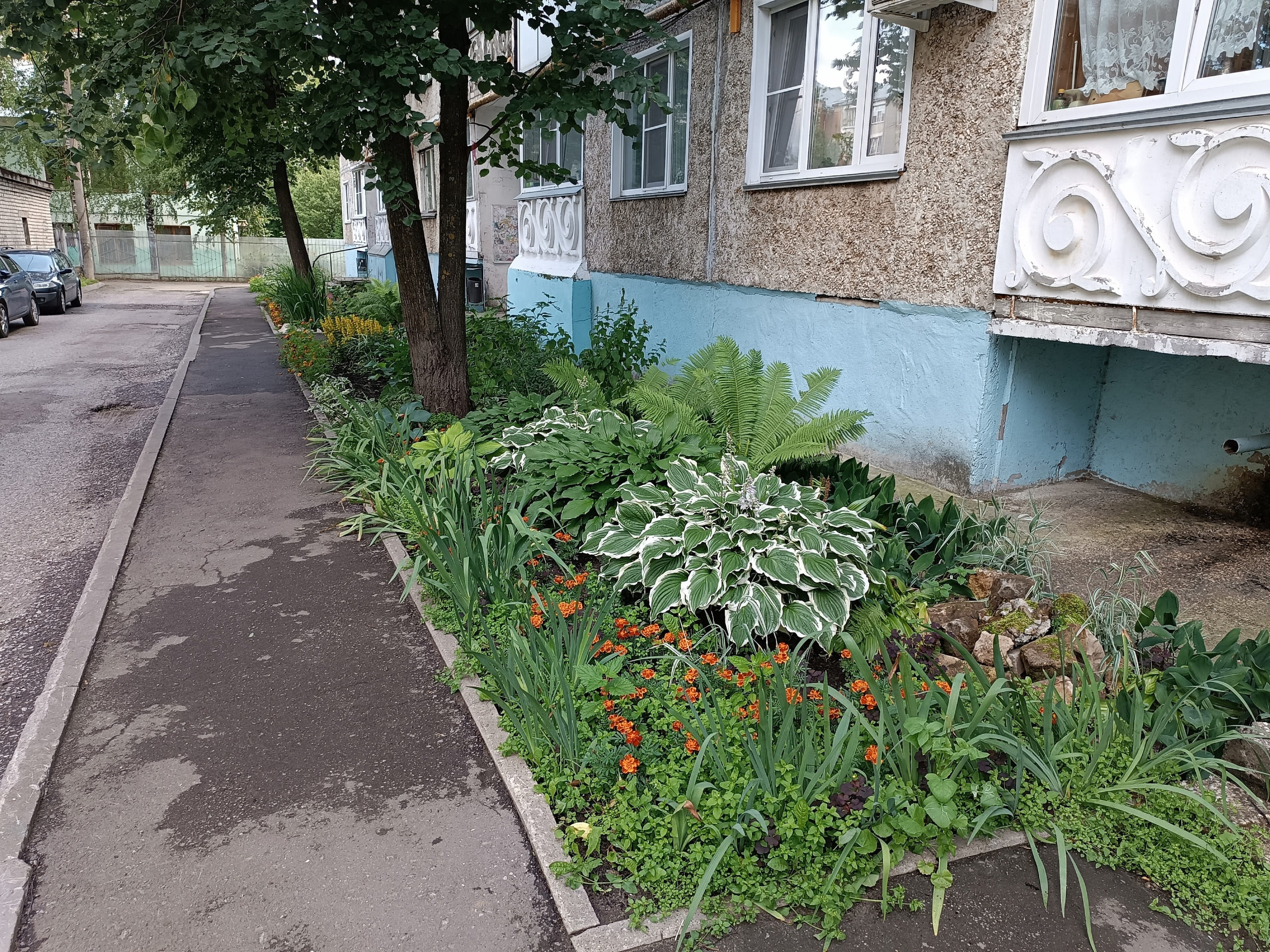 1. М. Гвардии, 65. Пятиэтажный панельный дом встретил ямами на придомовом проезде и ухоженными клумбами у каждого подъезда. Бросилась в глаза чернота под водостоками чуть не до водорослей. Подъезды в нормальном состоянии, на троечку, но это, судя по всему, заслуга прежней УК, так как на внутренних стенах при входе в подъезды краска сильно облуплена. Следы протечки в третьем подъезде с пятого по третий этажи. Не страшные, но на недорогую побелку УК не хватило.
