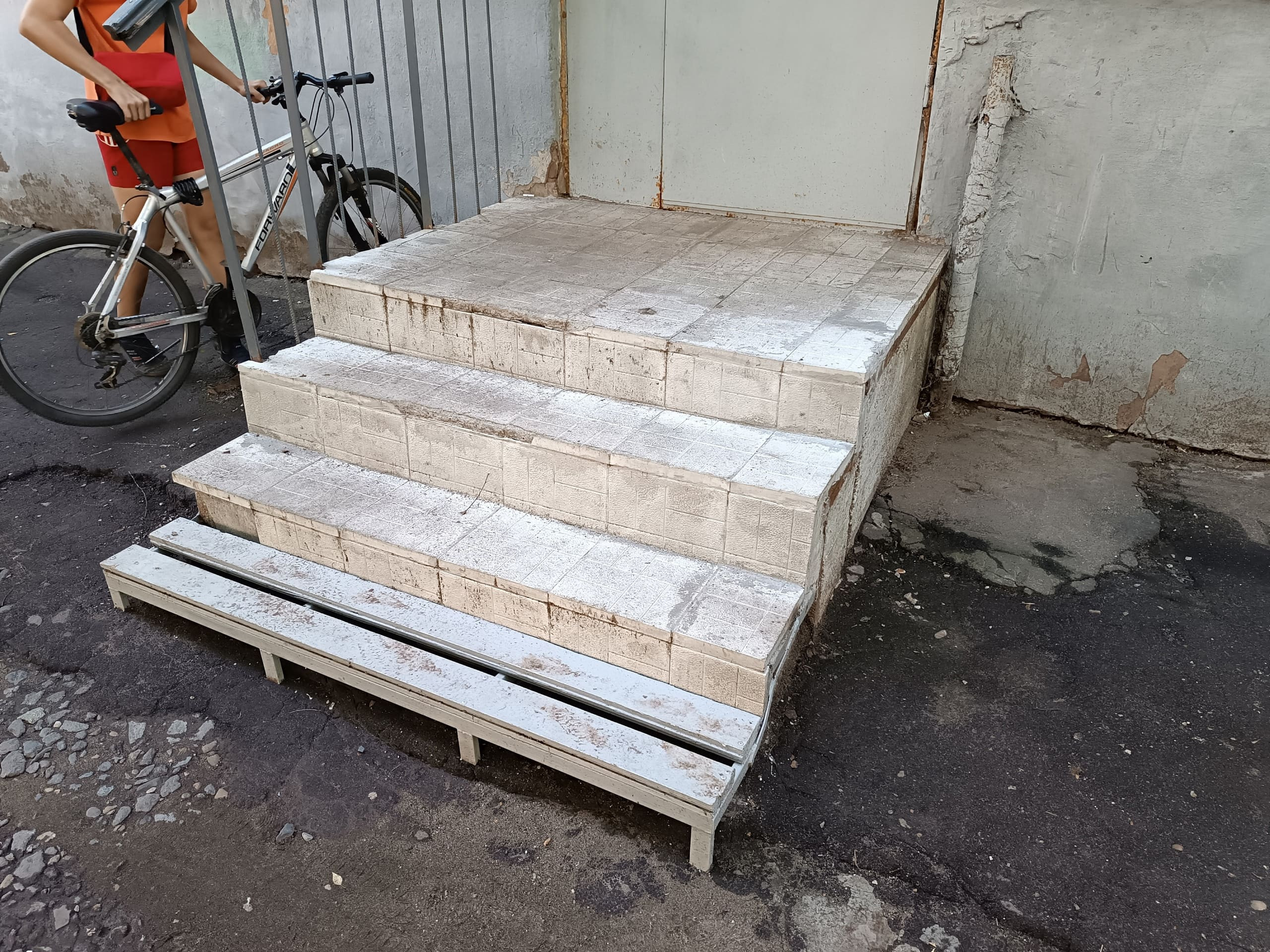 При входе в первый подъезд удивили дыры в полу (!), со стороной сантиметров 20-30, закрытые временными трапиками. Видимо, до случая, пока какой-нибудь выпивший житель не полезет из любопытства. Это называется не пуганная УК.